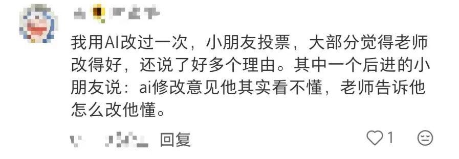 为了鼓励学生认真对待AI批改,有老师还想出了激励办法:“再次提交作文时,根据AI建议修改得更好的同学可以在原AI评判的基础上加分,还可以获得小礼物。”