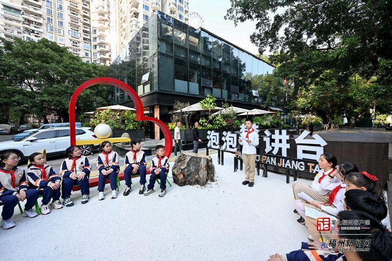 六年级的王梓霖则聊起了福州广场儿童活动区。“我们发现广场儿童区地面单调、缺乏趣味,便想着打造一个安全又好玩的空间。”跟随他的讲述,大家看到,地面上跳房子游戏的格子画成了茉莉花瓣,或融入温泉元素,还选用了环保防滑涂料,让大家玩得安心;广场边装上了不同颜色和主题的泡泡互动装置和心事邮箱,俨然一个“泡泡王国”。