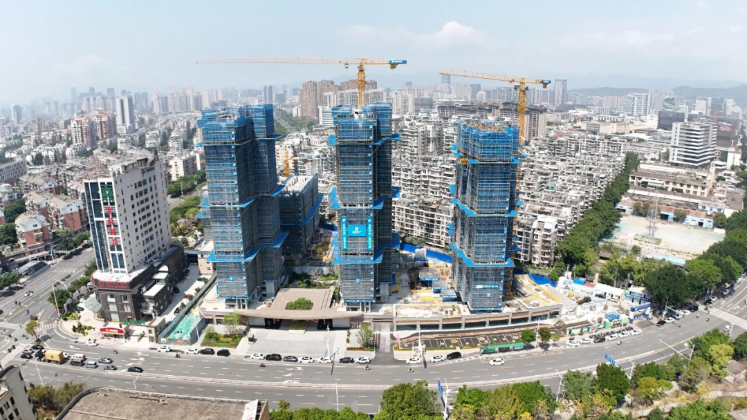 项目已进入全面封顶关键阶段,展示区施工任务正加紧推进,各项细节专项提升工程同步高效落地。项目共建设有14栋17F-33F住宅楼,提供商品房1106套,其中生态住宅488套;同时配建约5040㎡幼儿园及约3011㎡商业建筑,建成后将进一步完善区域人居配套。