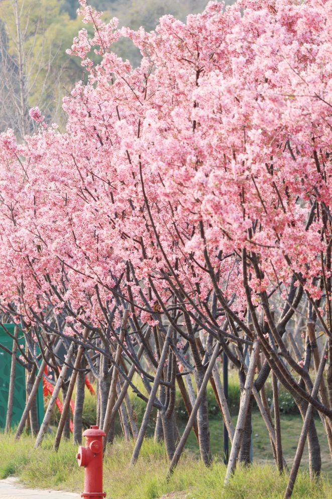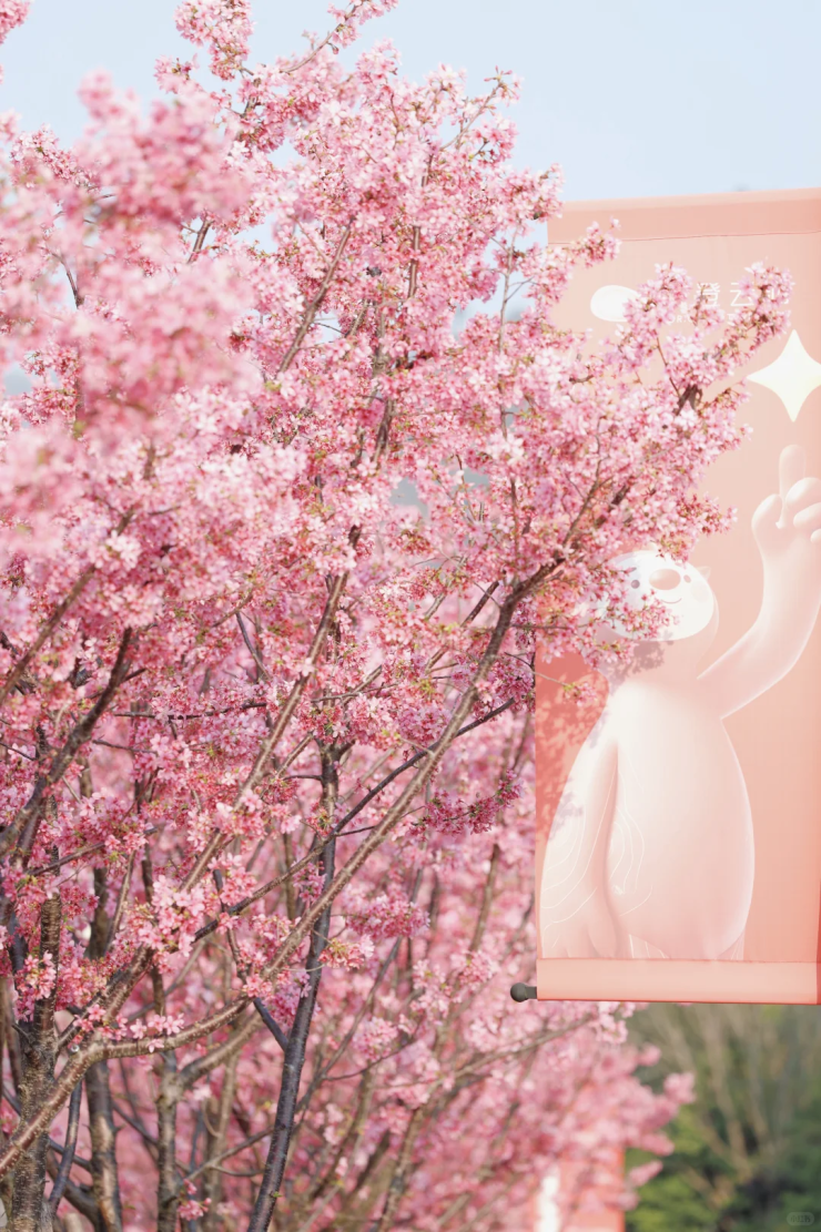 相较于其他热门公园,这里没有人潮的拥挤,只有千株樱花沿步道铺展,团团粉樱簇拥在枝头,像刚出炉的草莓味棉花糖,蓬松又柔软,浪漫又治愈。