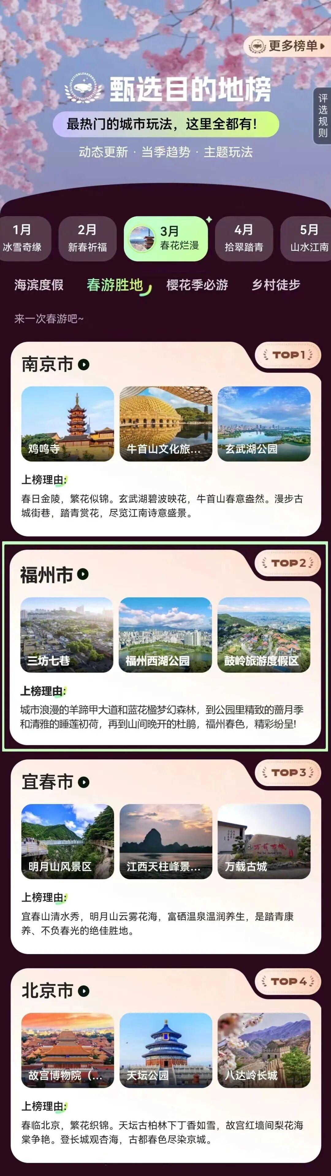 近日,同程旅行发布2026“春游胜地甄选榜单”,福州凭借“生态与人文双绝”的独特春日体验强势上榜,位列全国TOP2。