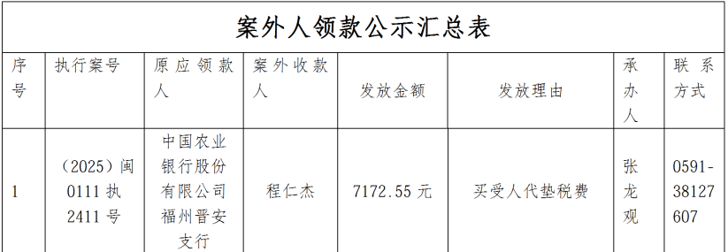 为进一步规范执行案款管理,保障当事人合法权益,根据《最高人民法院关于执行款物管理工作的规定》等文件精神,现对以下执行案款发放事宜予以公示,公示期为三天(自发出本公示的次日起计算)。