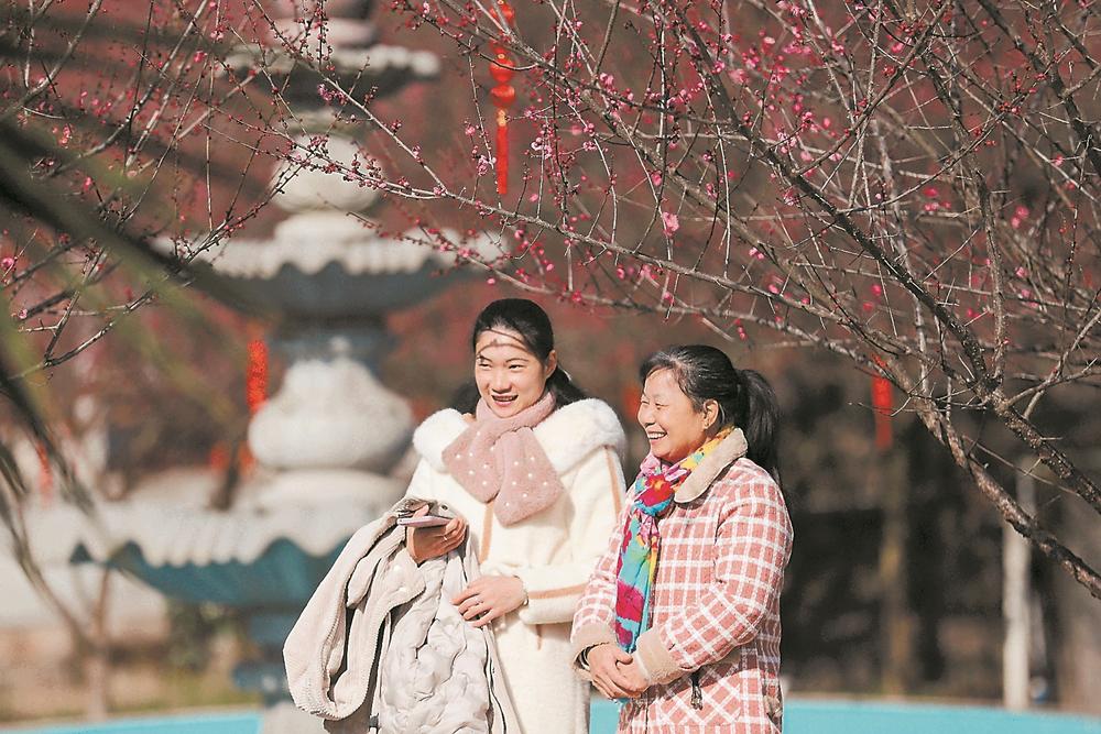 梅花盛开的梅洋村,成为远近闻名的赏梅胜地,八方游客络绎不绝。(资料图片)