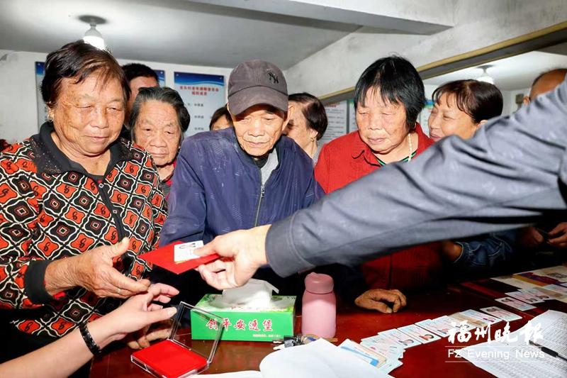 11月11日,连江透堡镇龙头村老年人活动中心里暖意融融,一场“敬老红包”发放活动正在进行。