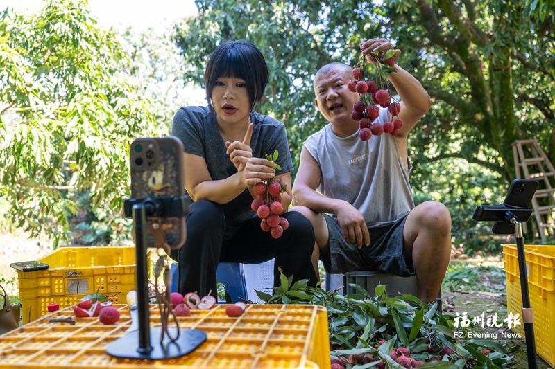 网络主播助力上洲村荔枝销售。