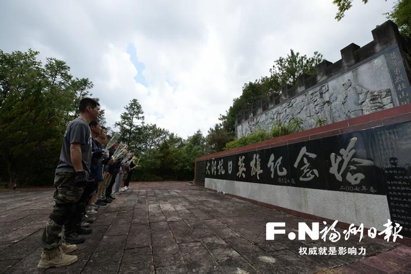9月3日,位于闽侯大湖乡的大湖抗日阵亡将士墓前松柏苍翠,纪念碑巍然屹立。来自福州闽越机车俱乐部的薛贤熙与骑手们手持黄白菊束,缓步拾级而上,将鲜花轻轻放在墓碑前,众人垂首默哀。