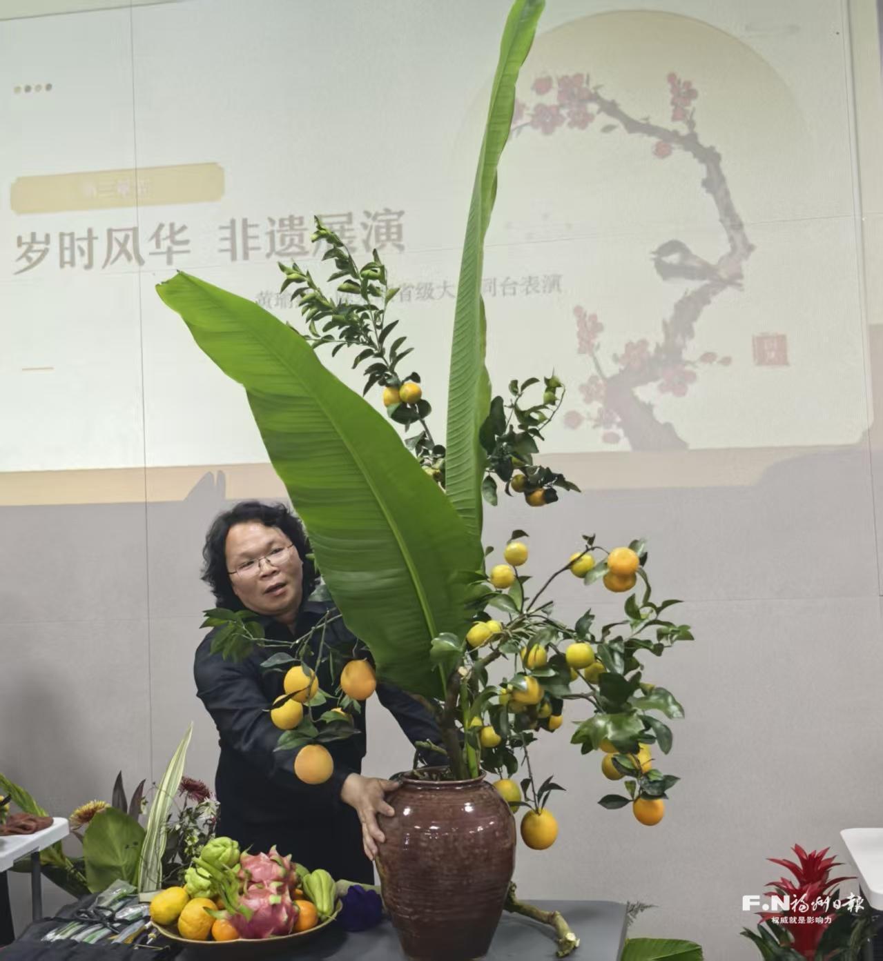 陈荣顺现场展示岁时清供摆件艺术。记者 谭湘竹 摄