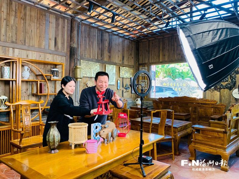 溪源村通过直播平台拓宽工艺品销售渠道。林鑫 摄