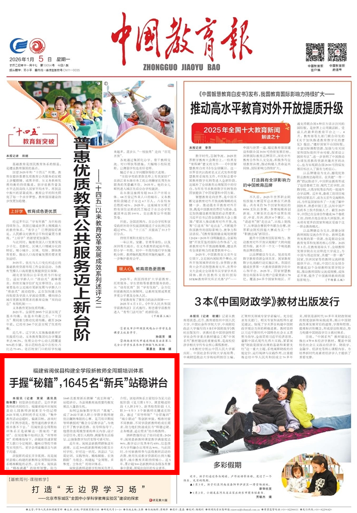 洪锐影的成长并非孤例,而是闽侯县精心构建的新教师全周期培训体系精准赋能的必然。近年来,闽侯县以“精准滴灌”的培育智慧,助力1645名教育新兵破解“成长阵痛”、站稳讲台,为县域教育高质量均衡发展注入蓬勃生机。