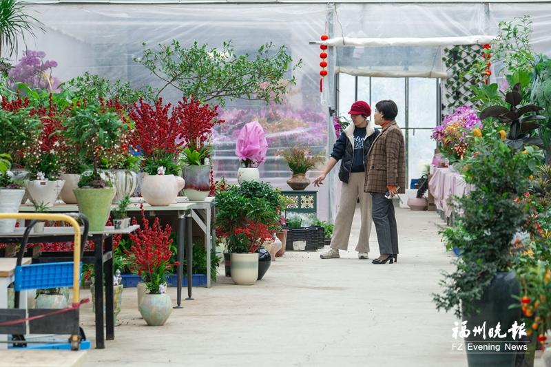 随着马年春节临近,在闽侯县上街镇侯官村,侯官花卉产业园里的各类年宵花竞相绽放,绿植葱茏悦目,吸引了众多市民前来选购。25日记者来此探访,发现今年市场内涌现出不少备受消费者青睐的创意新品及特色品种。
