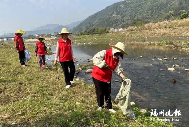 闽清县妇联工作人员开展河道清淤、岸坡垃圾清理等志愿活动。