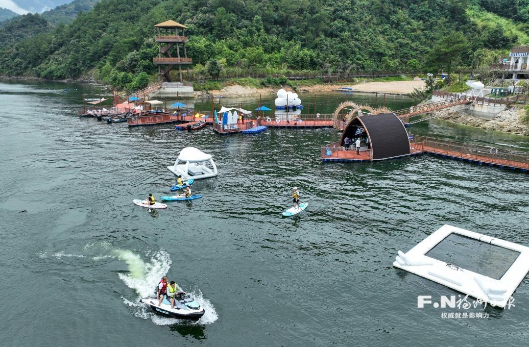 市民在漂浮公园体验水上运动。记者 石美祥 摄