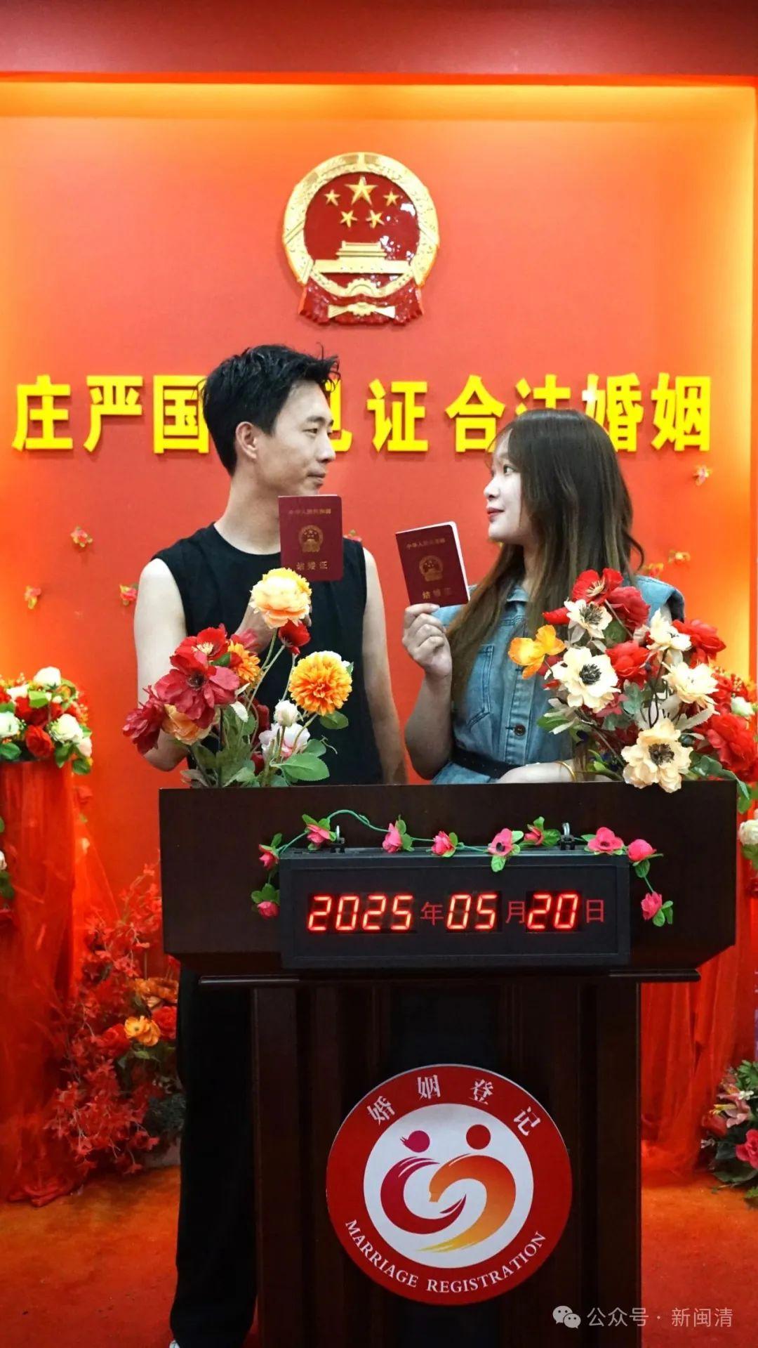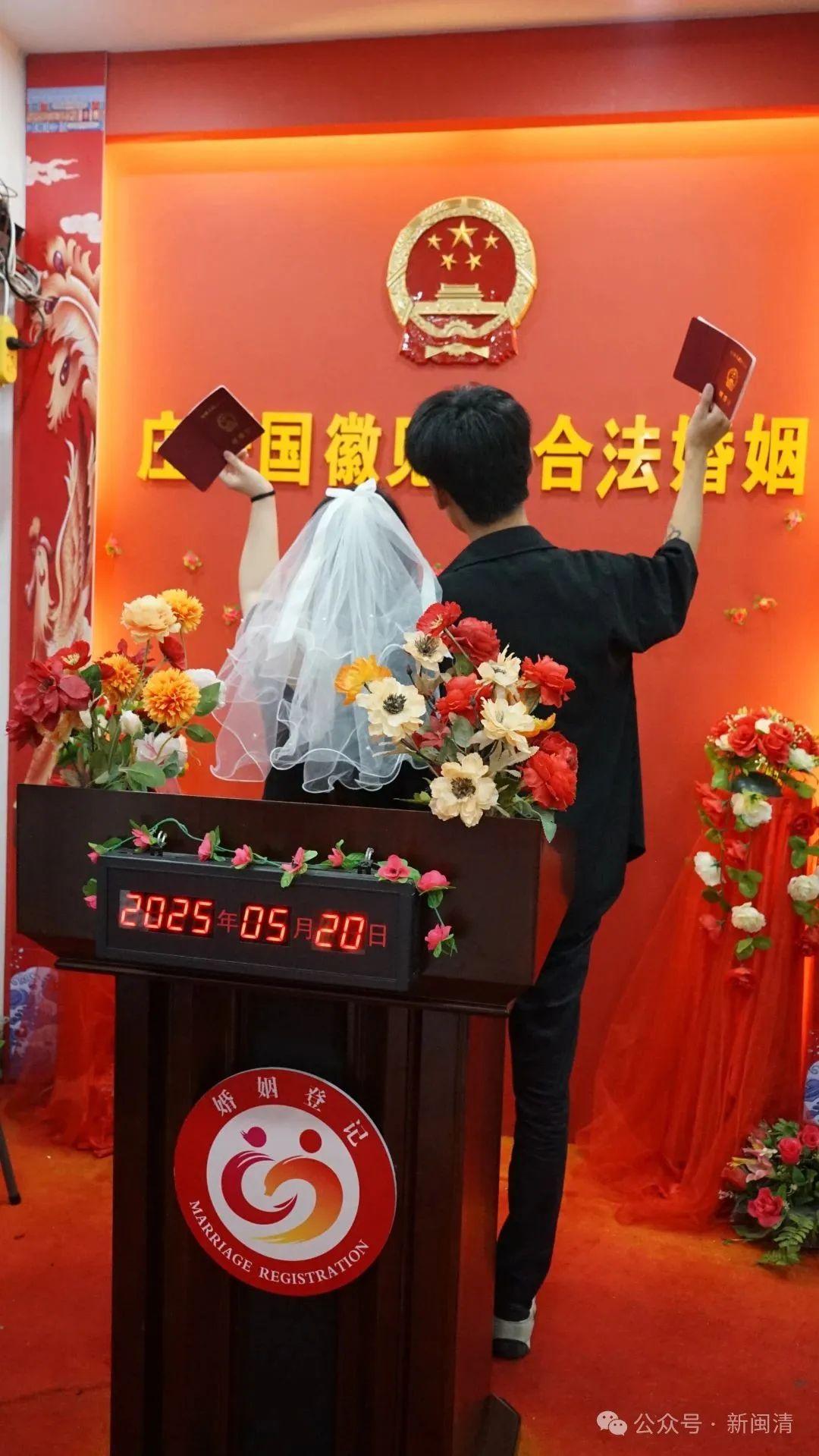 今天是5月20日,因其谐音“我爱你”,被赋予了无与伦比的浪漫色彩,成为众多新人眼中缔结良缘的绝佳日期。今年的“520”,闽清县婚姻登记中心再度迎来“甜蜜小高峰”,空气中弥漫着幸福的味道。