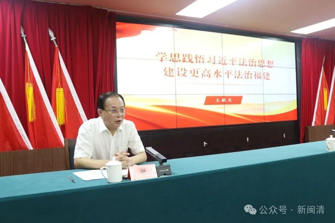 9月4日,闽清县召开县委理论学习中心组学习(扩大)会议,专题学习习近平法治思想。省人大常委会委员、监察和司法委员会主任委员、省直机关工委讲师团特聘教授王敏夫应邀作《学思践悟习近平法治思想 建设更高水平法治福建》专题讲座,深入阐述了习近平法治思想的丰富内涵、核心要义和实践要求。县委书记赵春荣主持会议。