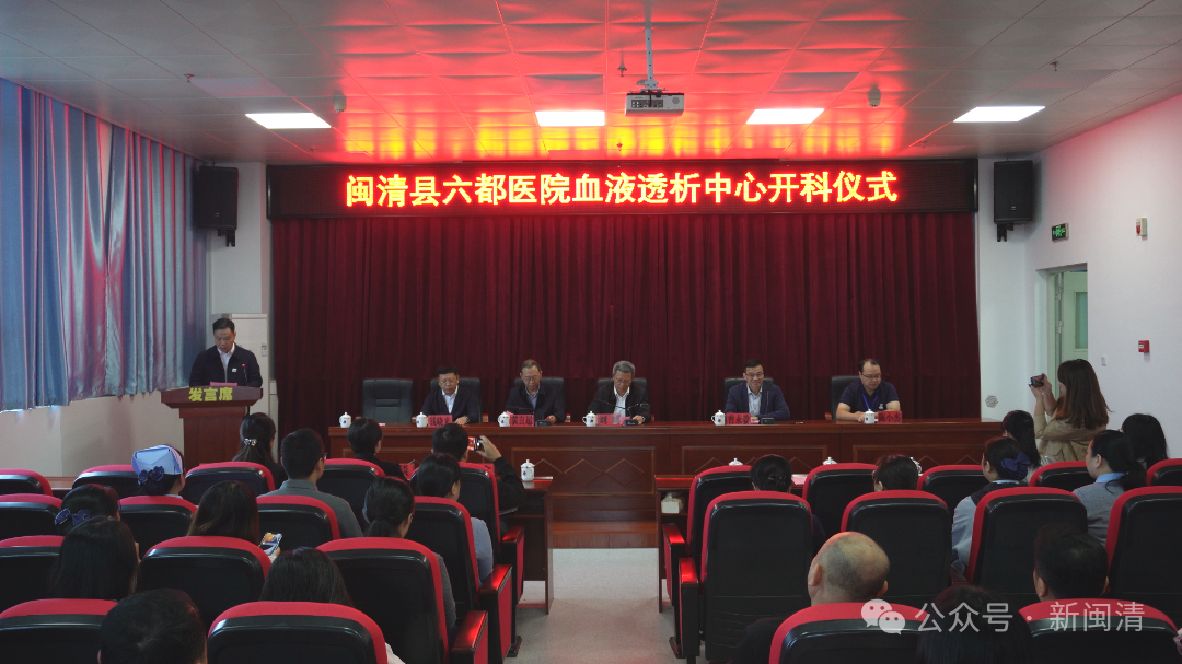 11月12日上午,闽清县六都医院血液透析中心举行开科仪式,标志着我县南部片区血透医疗服务实现重大突破。闽清县委常委、宣传部部长刘鸿,福建医科大学孟超肝胆医院院长曾永毅,县卫健局及县总医院相关领导与六都医院党政班子成员共同为中心揭牌并参观设施。