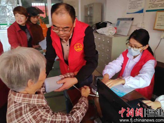 不久前,上莲乡卫生院院长林兆财带领医生、护士、药师等组成的团队,来到上莲乡金太阳养老院为老人们提供健康服务。测量血压、检测血糖、辨证开方、现场发药……在养老院一楼的休闲大厅内,诊疗流程有条不紊,诊疗团队当天就完成30余人次血压测量、20余人次血糖检测,为5位行动不便的老人精准配药。