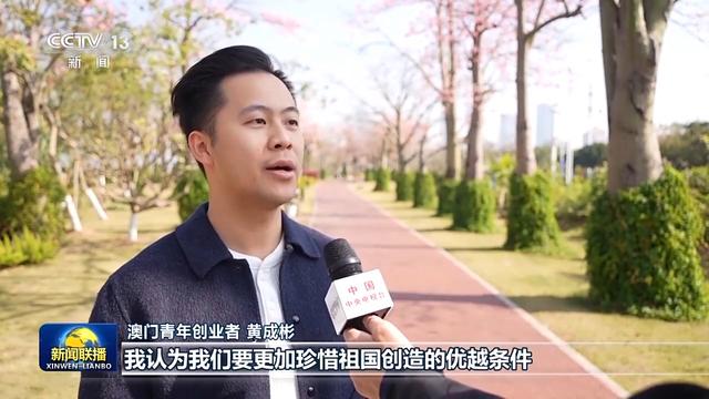 澳门青年创业者 黄成彬:总书记的关心和嘱托让我们备受鼓舞,作为一名澳门青年,我认为我们要更加珍惜祖国创造的优越条件,积极投身参与到琴澳一体化建设当中,加强与内地的交流,为建设世界一流湾区贡献自己的力量。