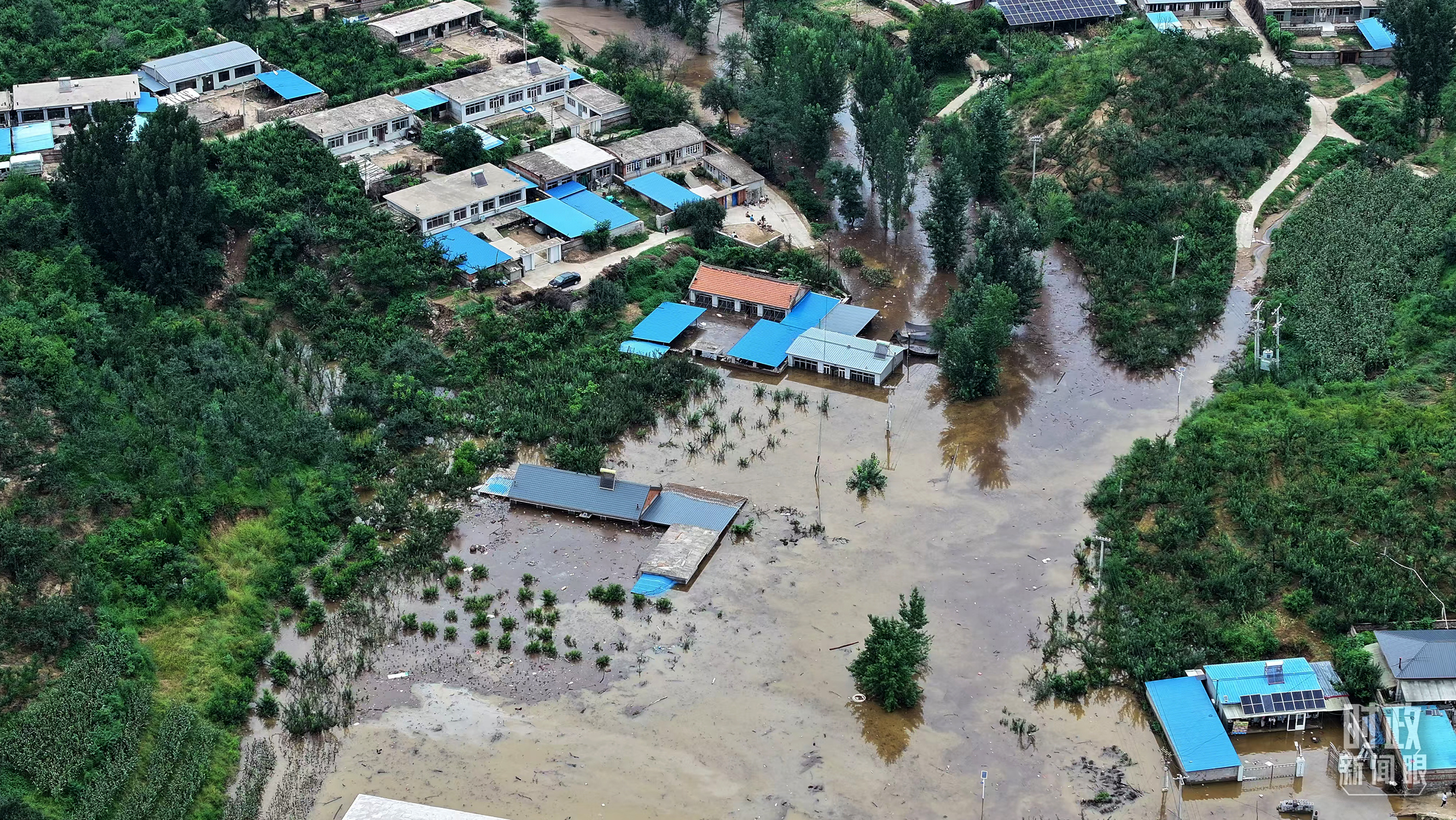 △被洪水淹没的祝家沟村。