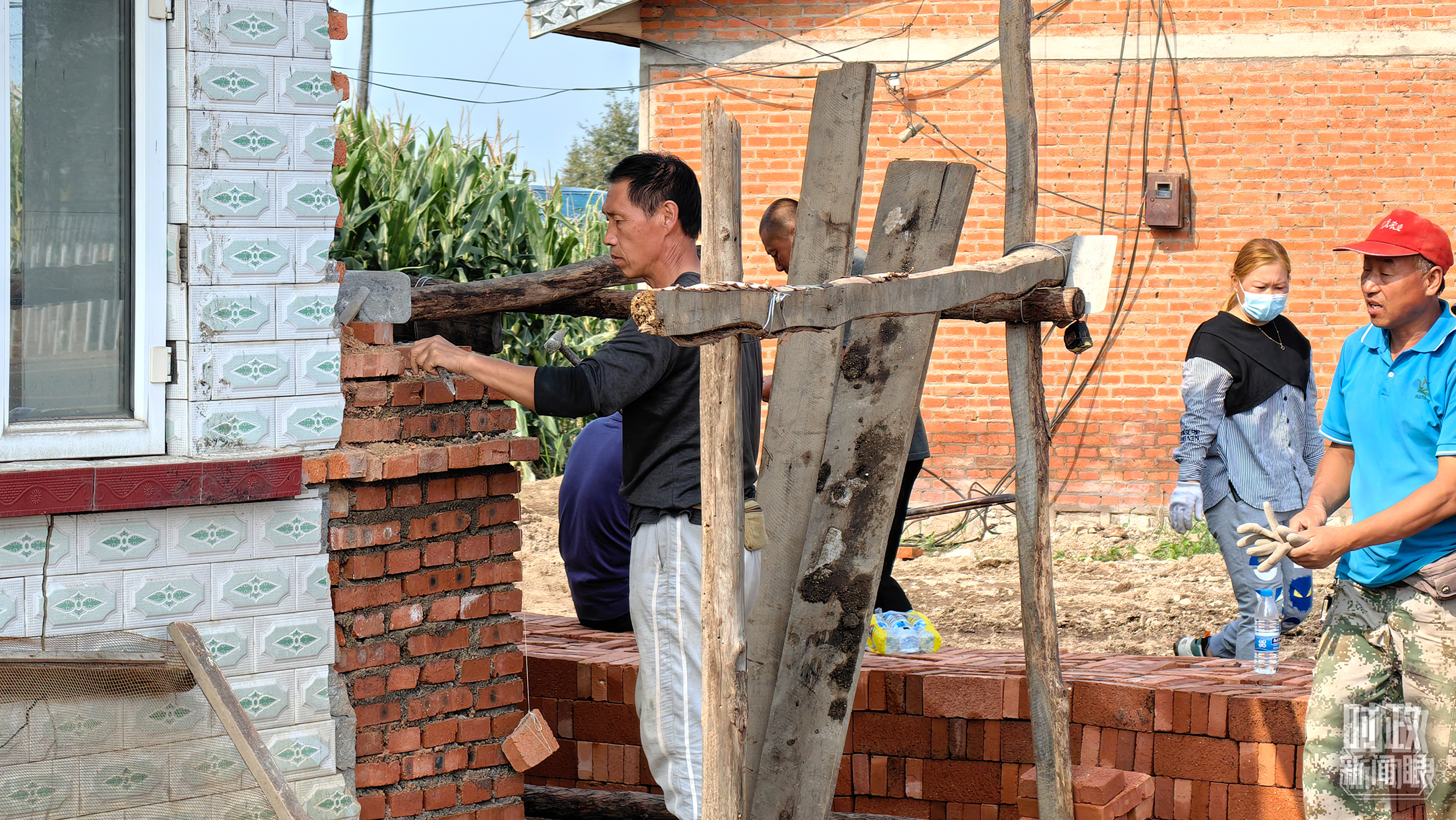 △2023年9月,黑龙江龙王庙村村民在修缮在洪水中受损的房屋。(总台央广记者潘毅拍摄)