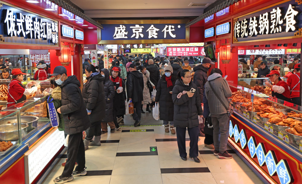 2025年1月22日,游客在沈阳故宫非遗年货市集游览消费。