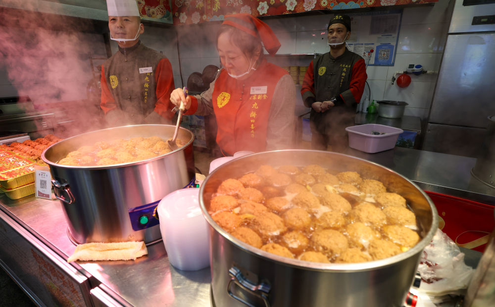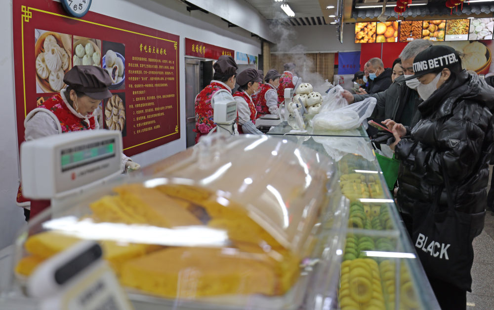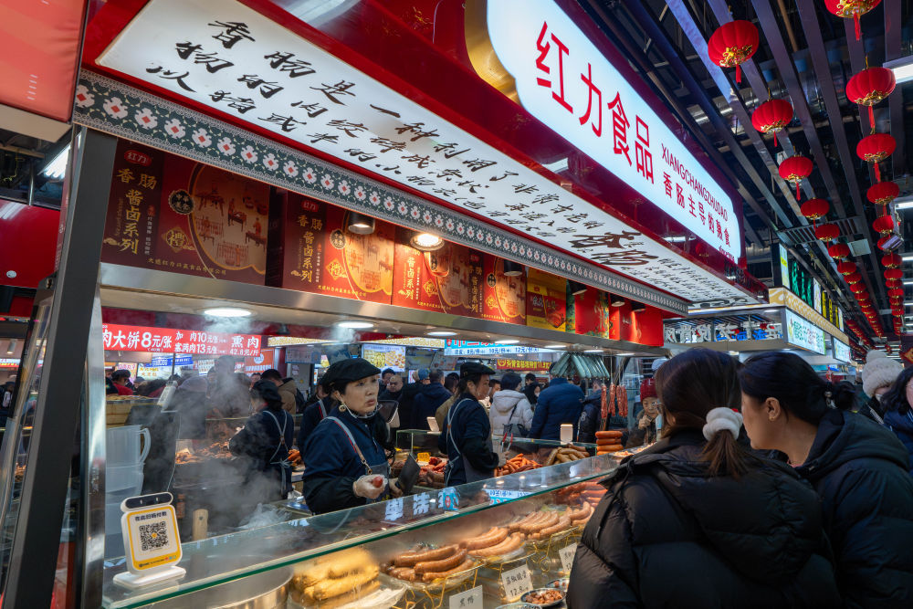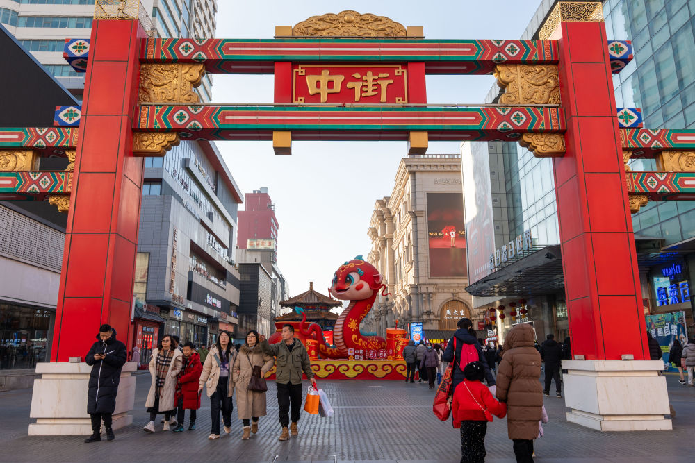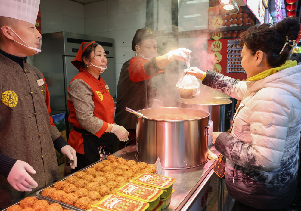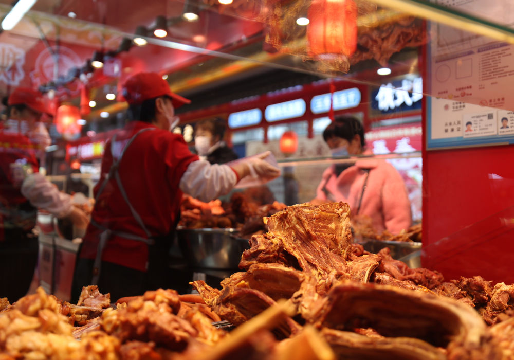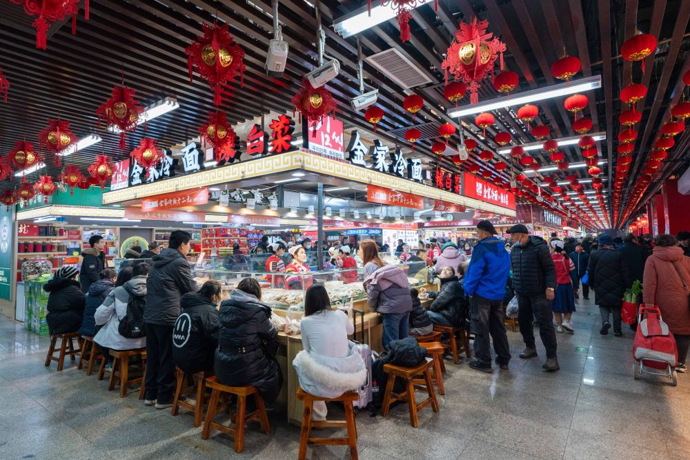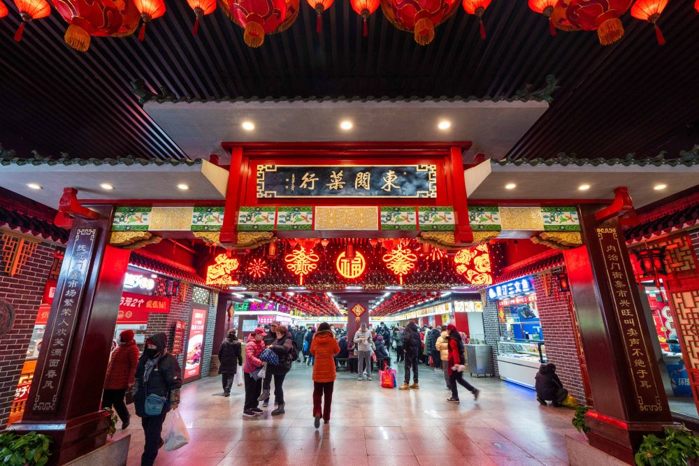 2025年1月22日,游客在沈阳中街长安寺胡同小吃街游玩。