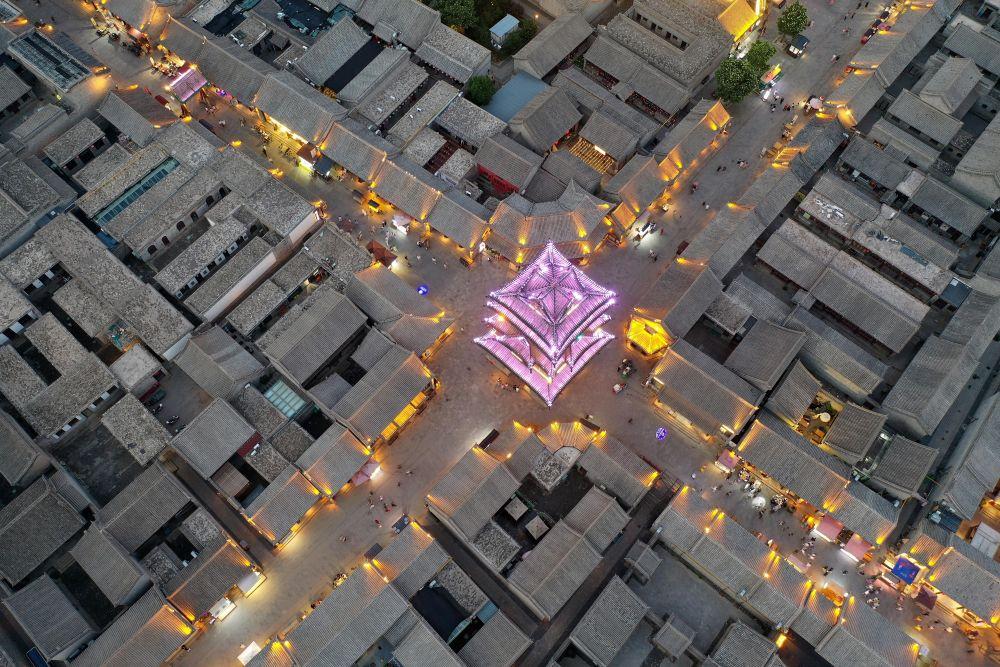 2024年7月17日,游客在太原古县城游览(无人机照片)。