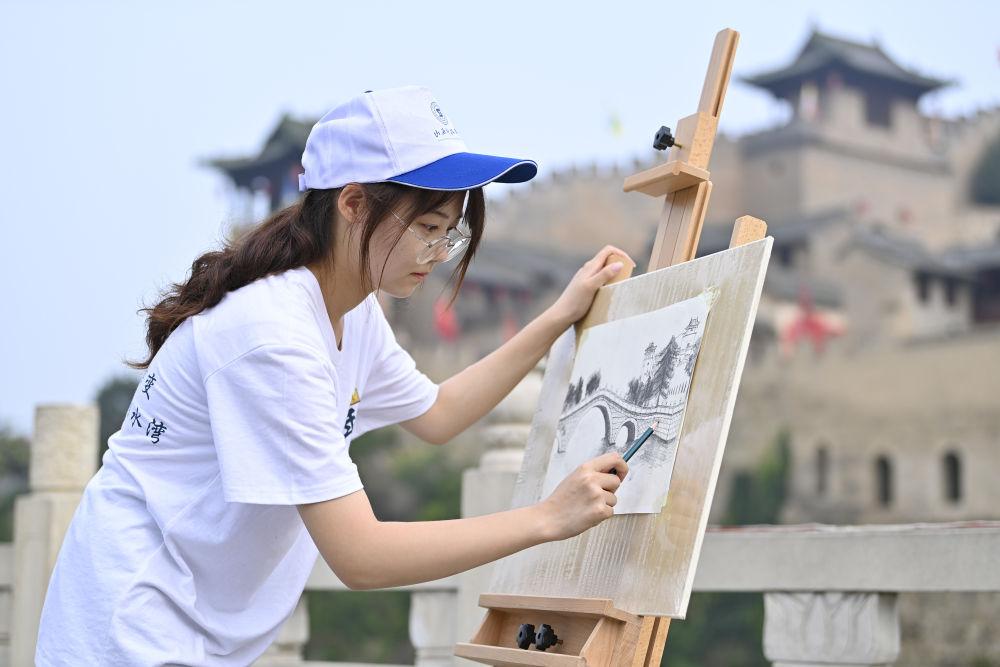 2024年7月10日,山西科技学院的学生在湘峪古堡写生。