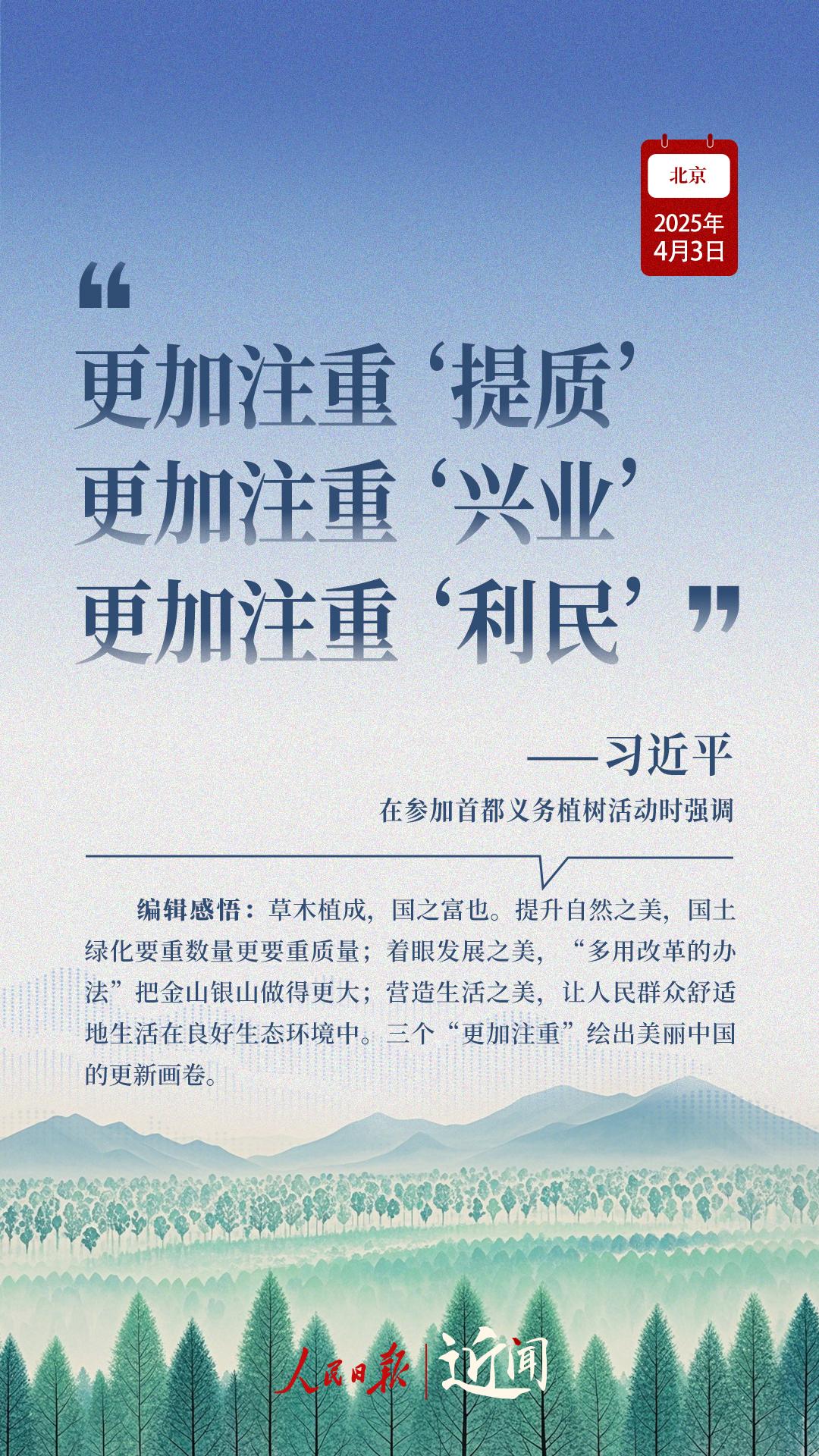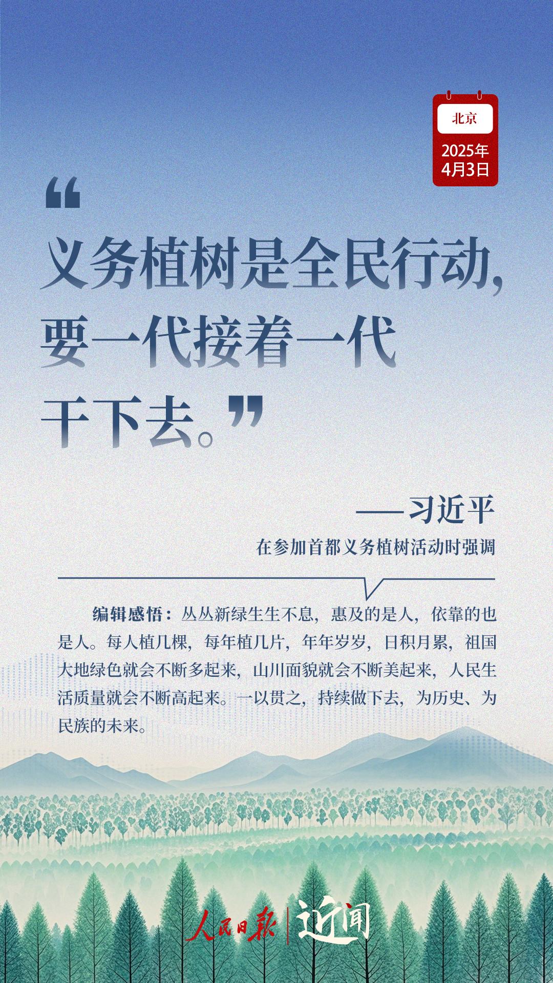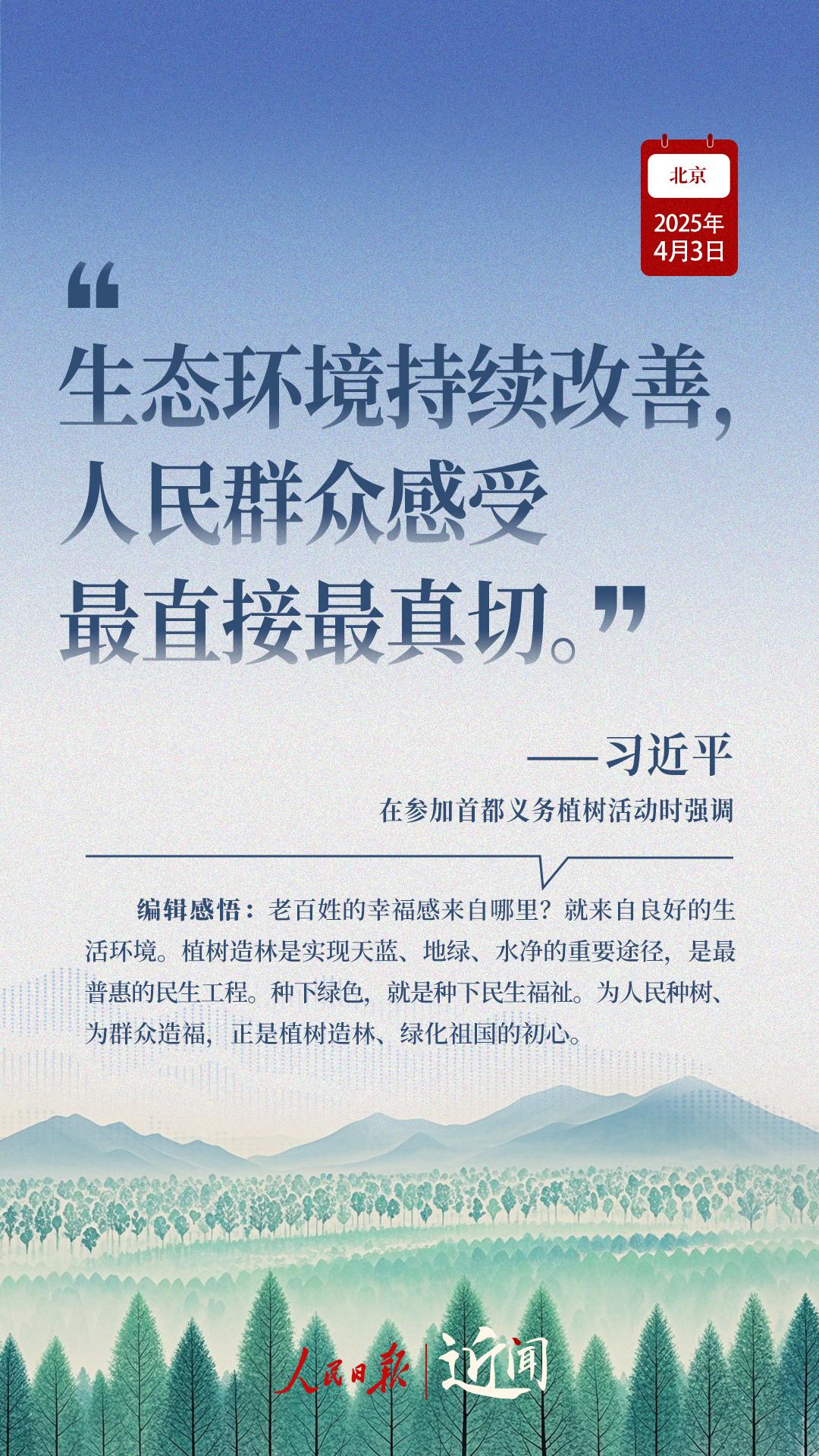 “生态环境持续改善,人民群众感受最直接最真切。”“义务植树是全民行动,要一代接着一代干下去。”在植树现场,从这些话语读懂一份坚持、一种情怀。