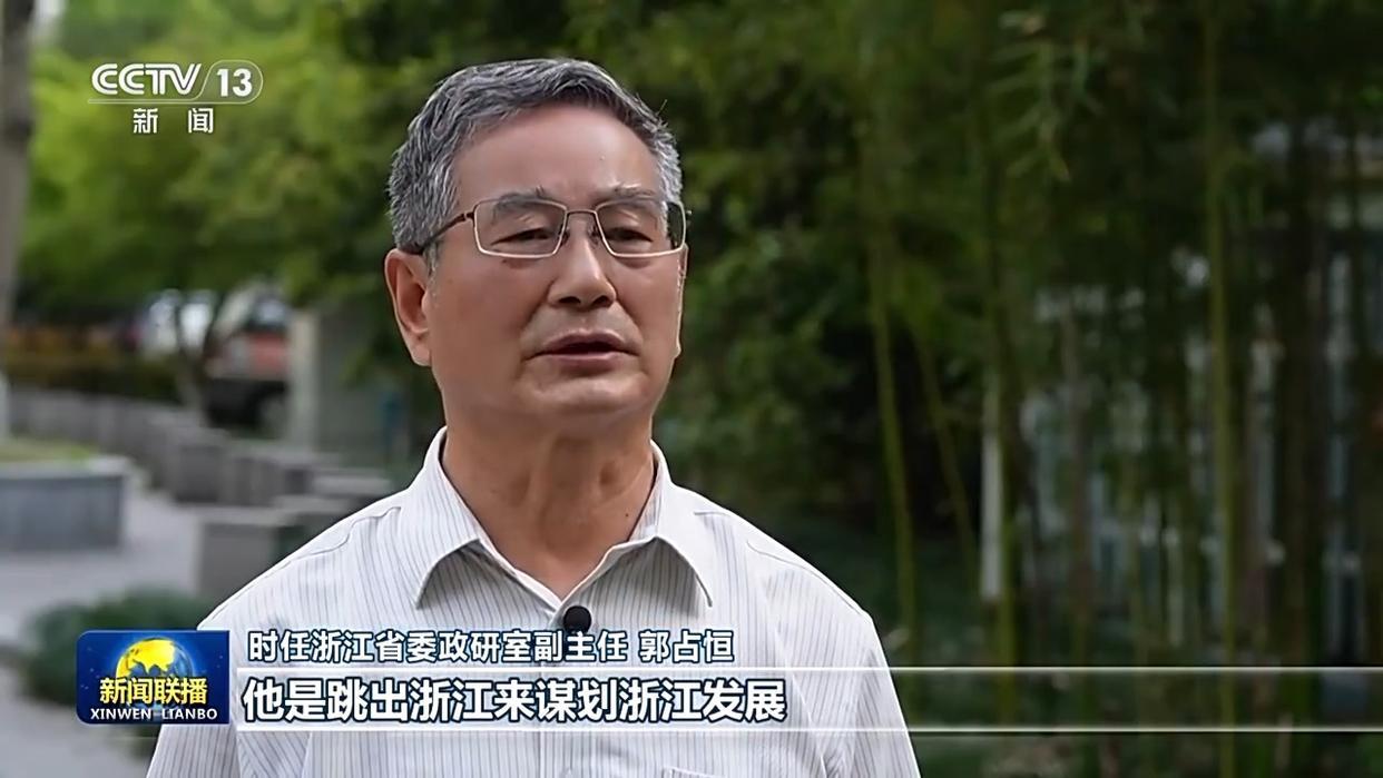 时任浙江省委政研室副主任 郭占恒:习近平同志思考问题具有前瞻性,他是跳出浙江来谋划浙江发展,要求我们的企业积极参与国家重大战略的实施工作,充分利用国际国内两种资源、两个市场,来弥补浙江市场比较小、资源比较短缺这样一个“先天不足”。