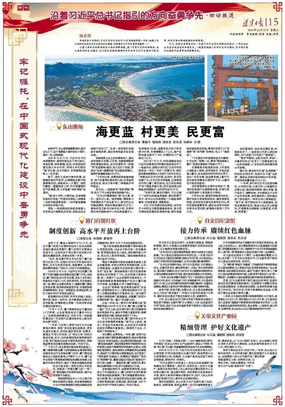 近日,福建日报记者循着总书记考察的足迹回访,以笔墨和镜头,生动记录总书记的殷殷嘱托在八闽大地的时代回响,展现新福建建设的奋进图景。