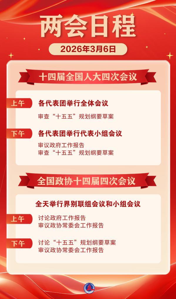 两会日程预告丨3月6日:审议和讨论政府工作报告 审查和讨论“十五五”规划纲要草案