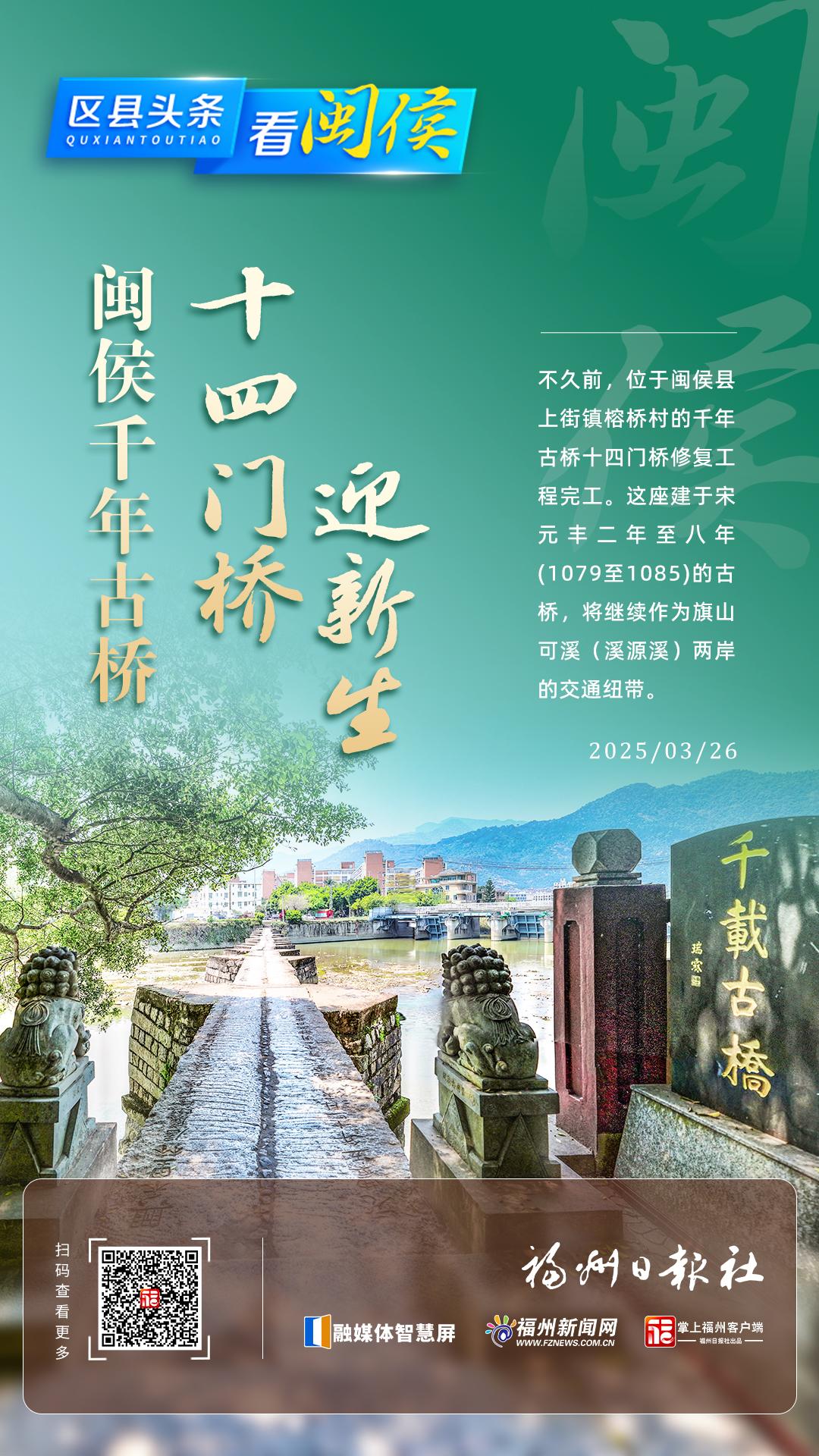 闽侯千年古桥十四门桥迎新生