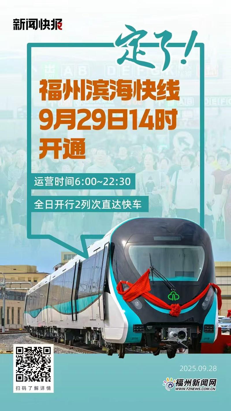 定了!福州滨海快线9月29日14时开通