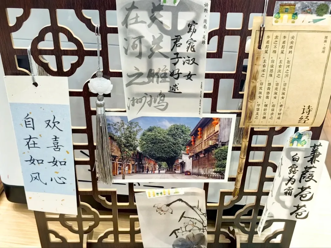 沿街店铺紧密排列,各式非遗体验在这里也能找到,纹理细密的软木画、精致的脱胎漆器、古朴韵味的油纸伞……