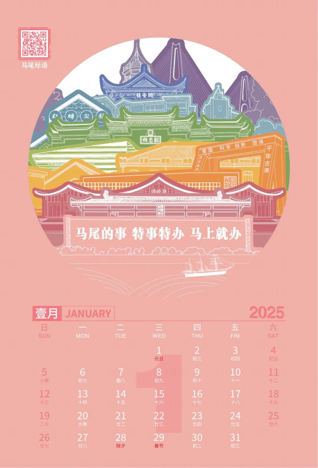 快跟着“2025年马尾文旅文创台历”