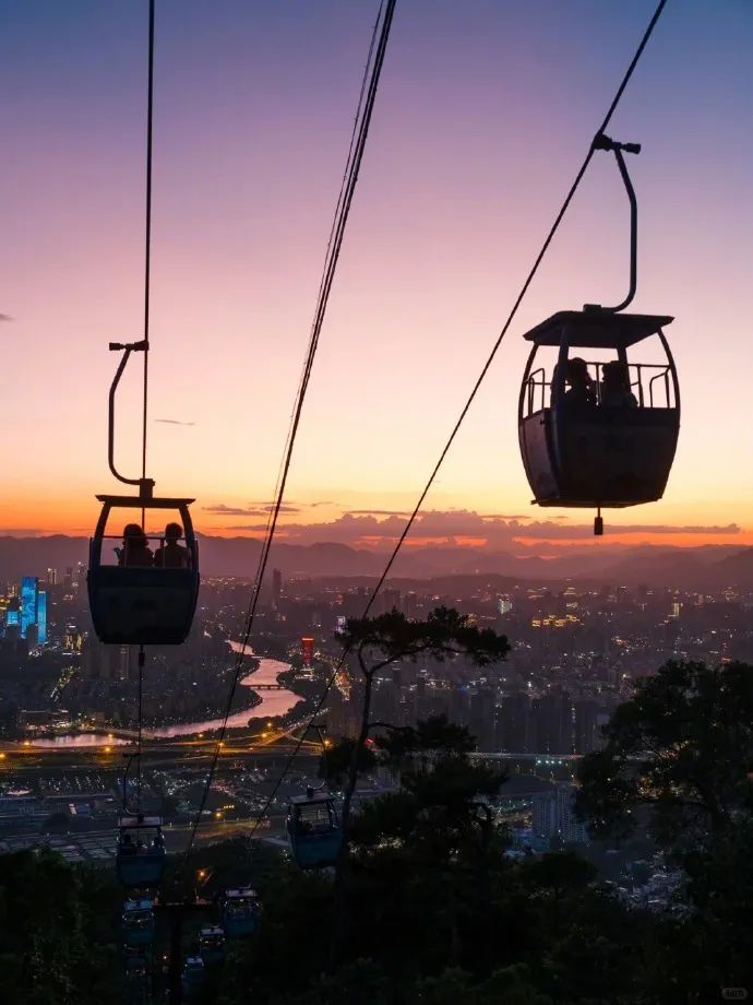 临近日落,不妨与李雯雯一样,选择乘坐缆车下山。在落日余晖下,俯瞰城市的万家灯火逐渐亮起,星星点点。