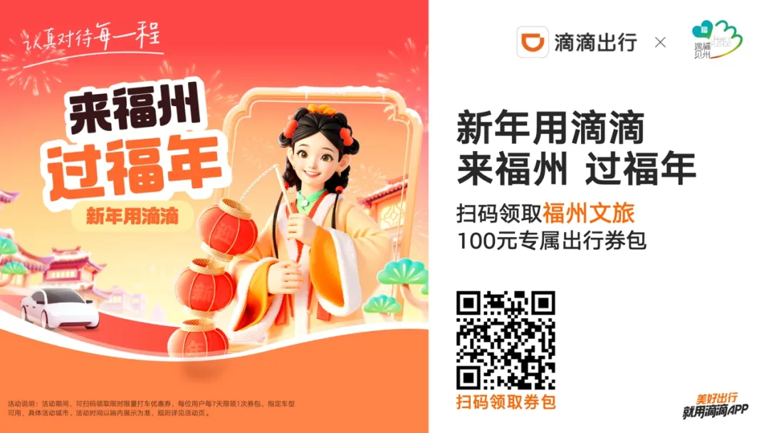 聚焦文旅商融合,福州市文旅局在“同程旅行”APP平台举办新春文旅网络消费季活动,1月17日起推出福州文旅产品优惠套餐、促销盲盒,发放红包补贴100万元;联合滴滴出行,于1月17日-2月17日发放2000份价值100元的出行消费券;