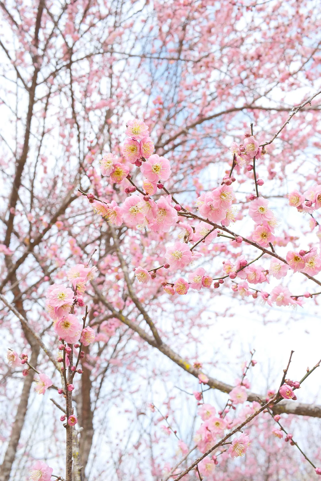 山樱花或含苞待放,或随风轻舞,粉红的瓣影点缀枝头,仿佛为山谷添上一抹羞涩的胭脂。
