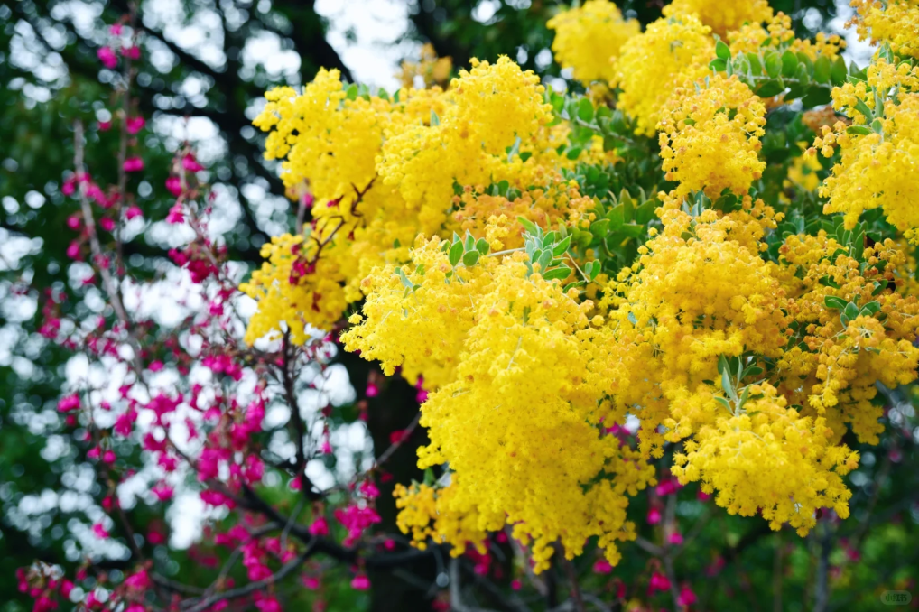 好看的不止樱花,金合欢花同样引人注目。细密花簇如黄金雕琢,为山林添上雅致的注脚。双色花海交织,正是福州春日的独家记忆。
