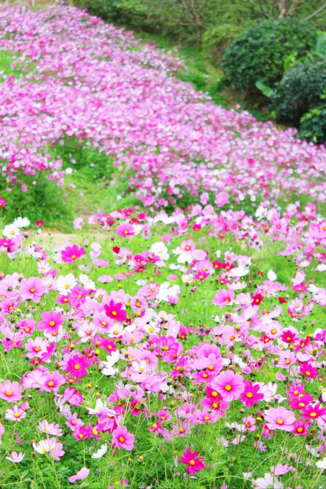 最惊艳的当属格桑花海——红如烈焰、粉似霞光、白胜新雪,层层叠叠的花瓣随风起伏,恰似“幸福”的涟漪在风中荡漾。