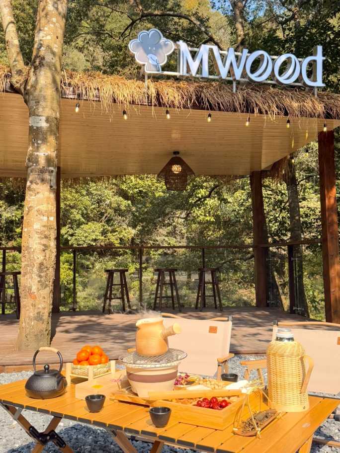 玩累了,不妨走进木屋咖啡,坐在舒适的折叠椅上,来一杯香醇咖啡或清新果饮,感受阳光透过树叶的缝隙洒在身上,聆听悠扬的鸟鸣、轻柔的风声和潺潺的溪流,或是与好友围炉煮茶,让茶香驱散疲惫,享受自然的闲逸舒适。