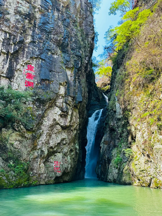 溪水从岩体上方狭窄的峭壁间直落形成瀑布,自然地遮住洞口,宛如一帘幽梦,隐秘而神奇,吸引无数游人前来探寻。
