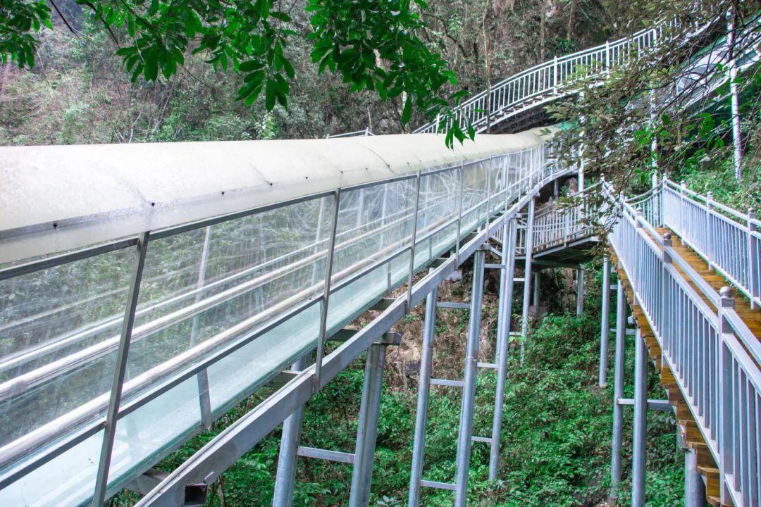 意犹未尽之时,玻璃滑道已在前方召唤。从山顶沿着滑道飞速而下,感受风在耳边呼啸,两旁的景色如闪电般掠过。滑道的终点是一片充满生机的绿地,让你在刺激过后,能瞬间沉浸在大自然的怀抱中,放松身心。
