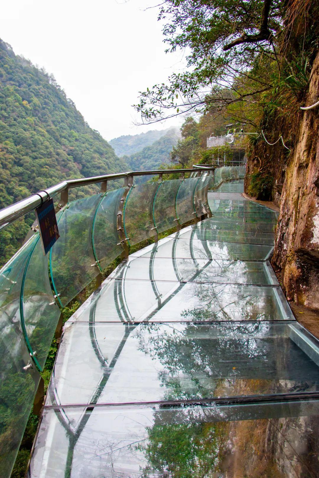 移步前行,玻璃天桥映入眼帘。立身桥上,俯瞰整个景区,连绵的山峦、茂密的森林和奔腾的瀑布尽收眼底。