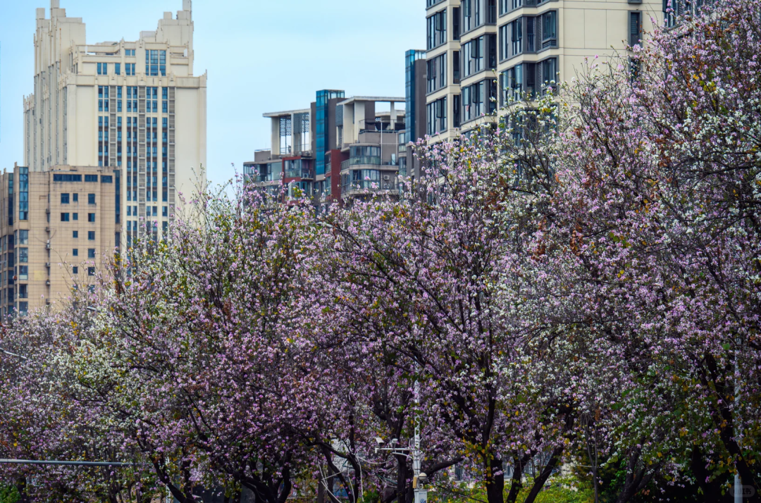 微风拂动,花瓣似雪纷扬,铺就温柔花毯