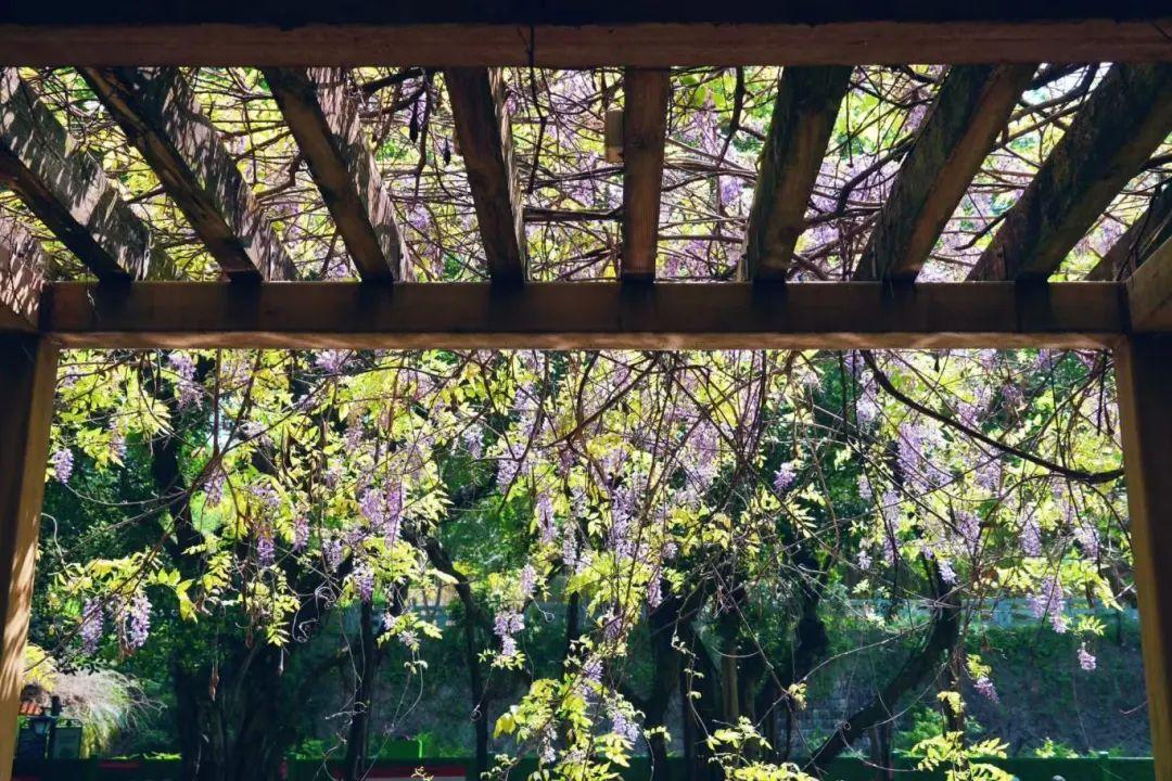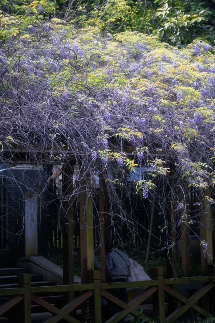 悠悠踱步于紫藤长廊之下
