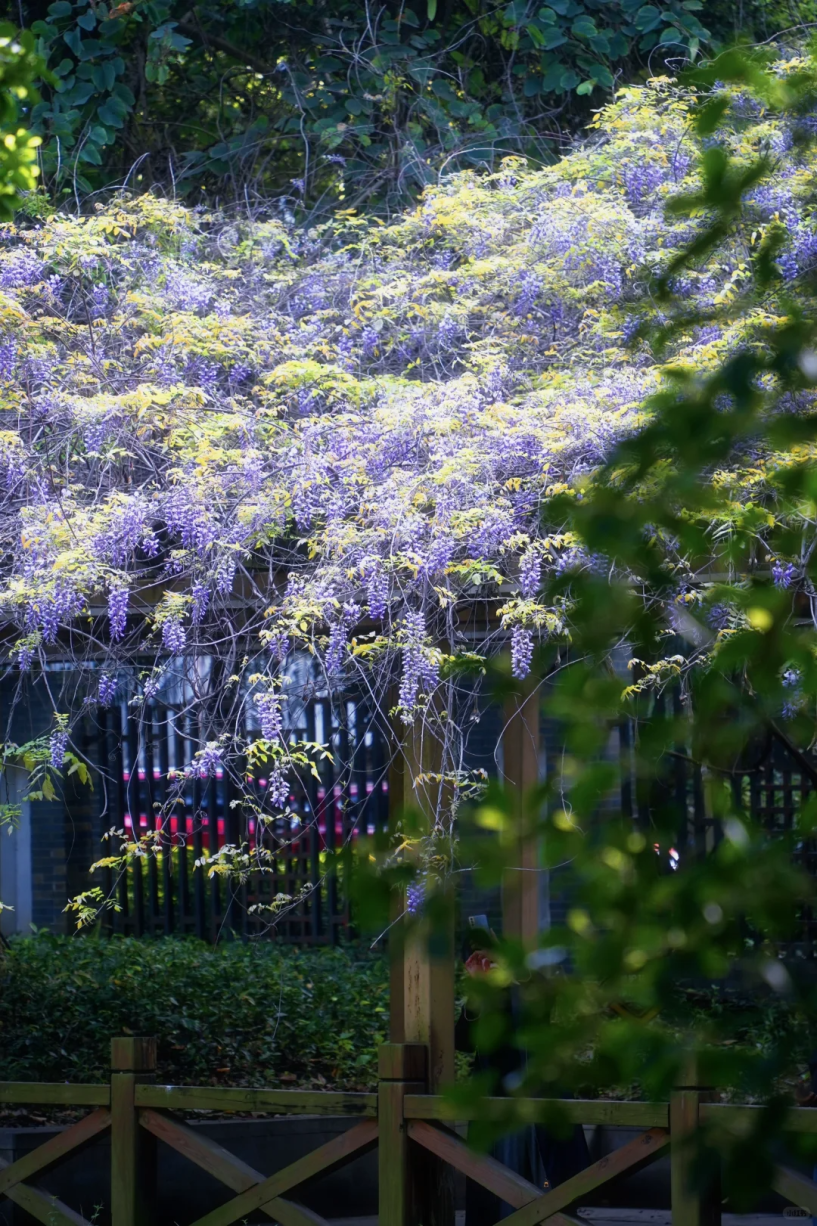 这一片紫藤花海便泛起层层 “紫浪”