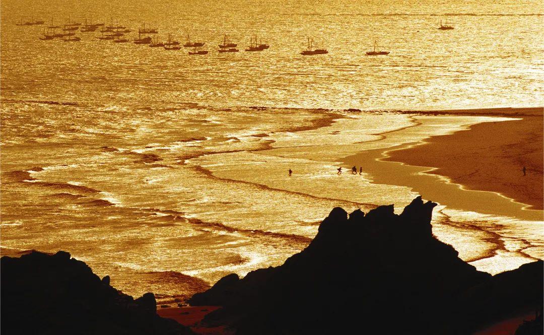 渔船划开熔金般的海面