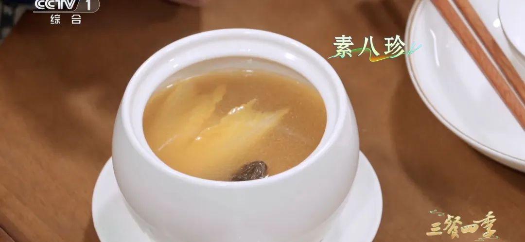 素八珍佛跳墙是素食者的钟爱,精选福建时令菌菇、鲜笋入锅,炖出诱人金黄汤,满是自然馈赠,乃养生佳选。