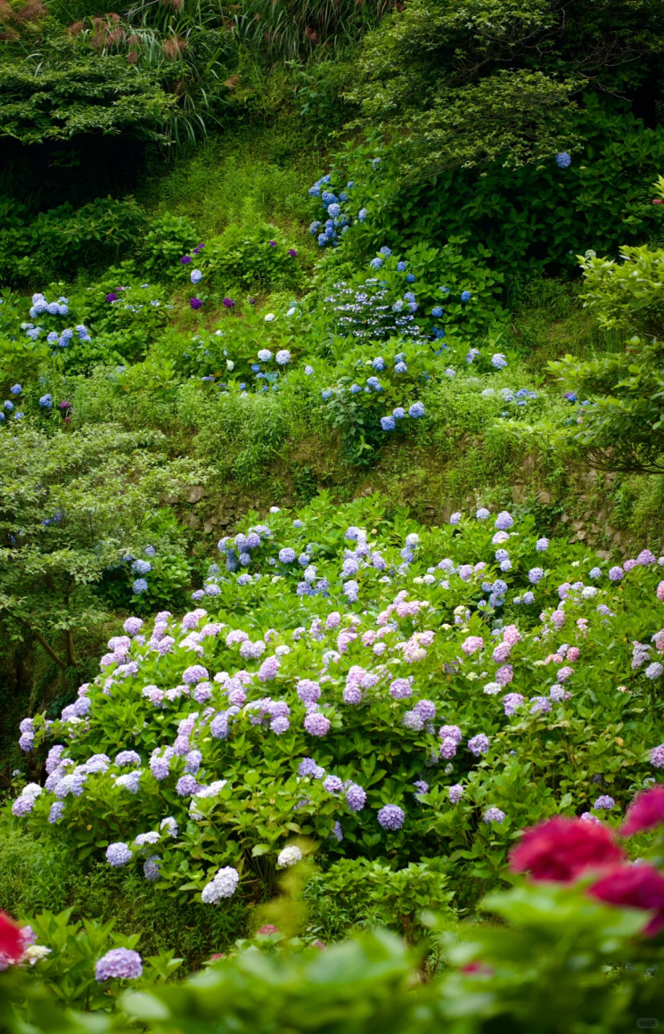 鼓岭的长田溪花田,11万株绣球花肆意绽放,花瓣层层叠叠,紧密相拥,每一片都如丝绸般光滑细腻,色彩鲜艳而饱满。